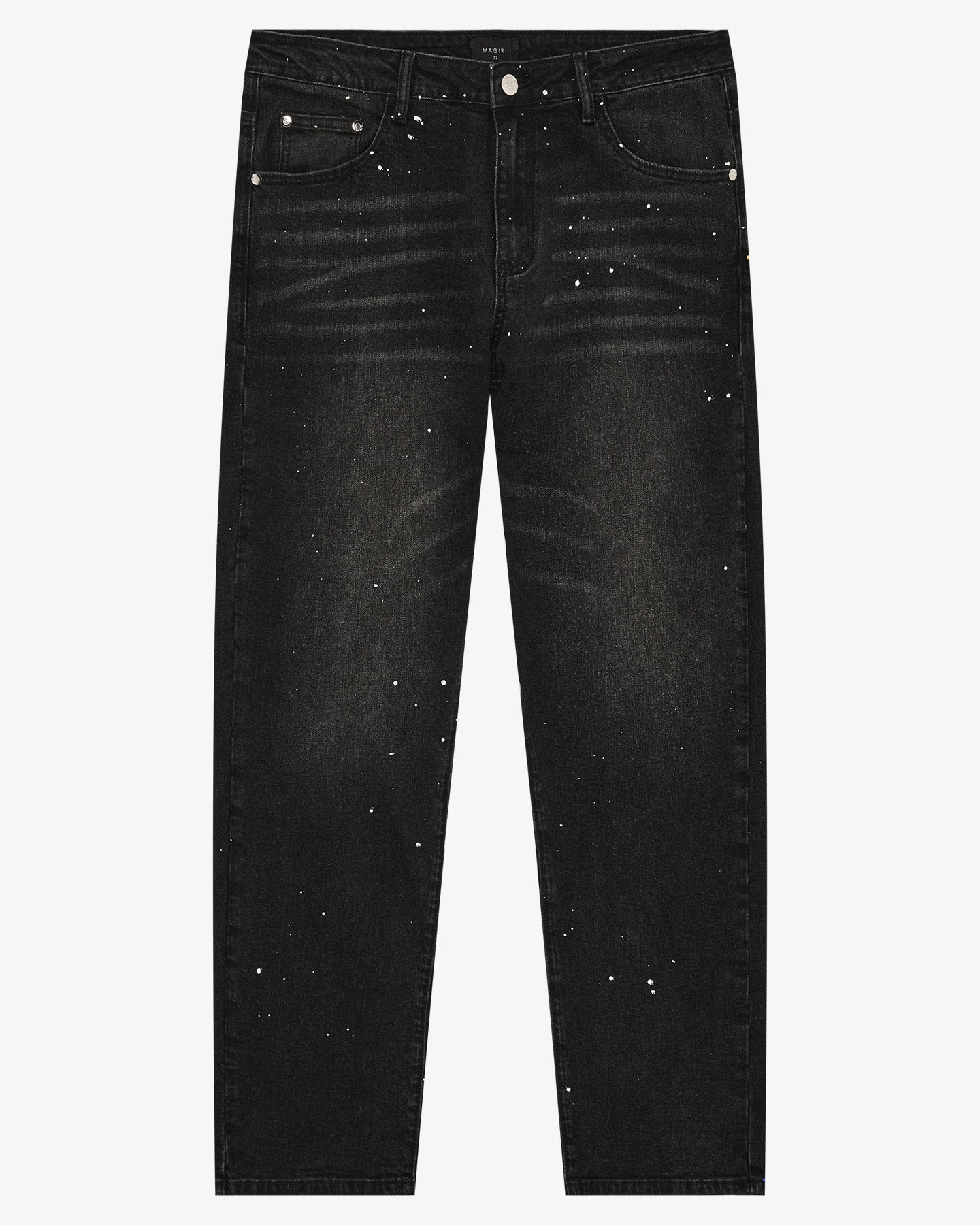 The Black Paint Splash Straight Jeans have been crafted from premium black denim in a straight-leg silhouette. Featuring hand-applied paint splash detailing, each pair is individually finished, ensuring no two are the same.