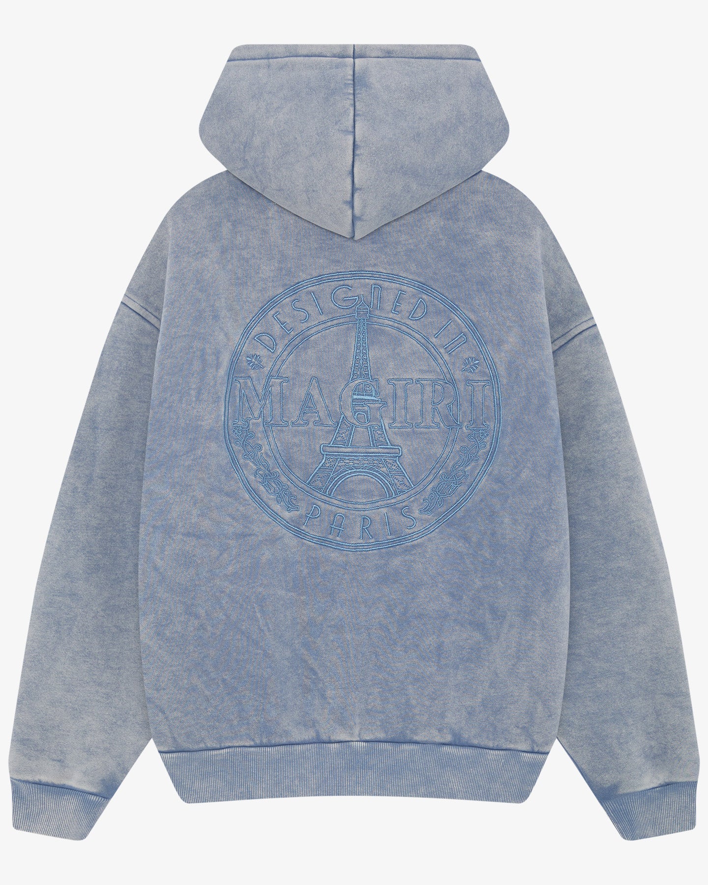 Embroidered Acid Wash Hoodie in Washed Blue