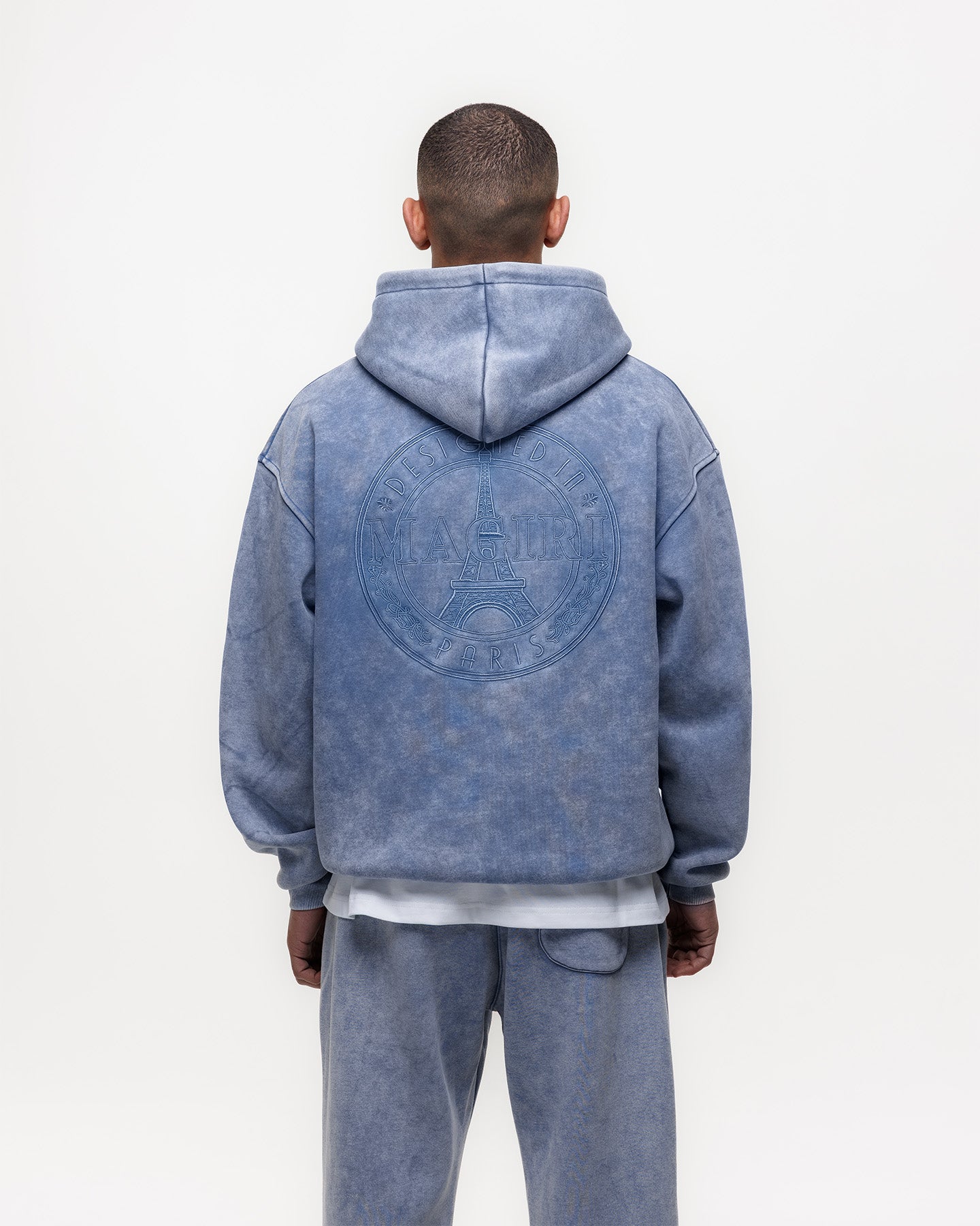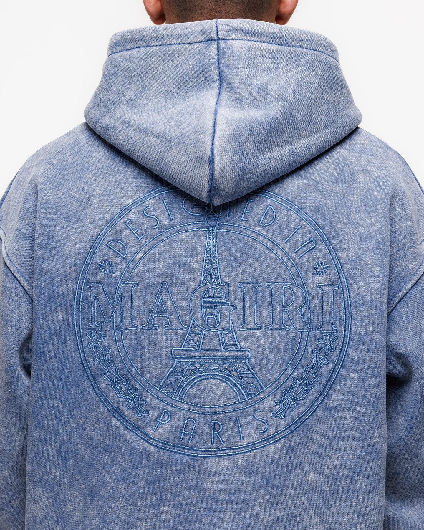 The Blue Acid Washed Hoodie has been crafted from premium heavyweight cotton in a classic hoodie silhouette. Featuring a unique acid wash finish, each piece carries subtle variations for a distinctive look. Finished with a soft velvet lining, embroidered front patch and a large embroidered patch at the rear.