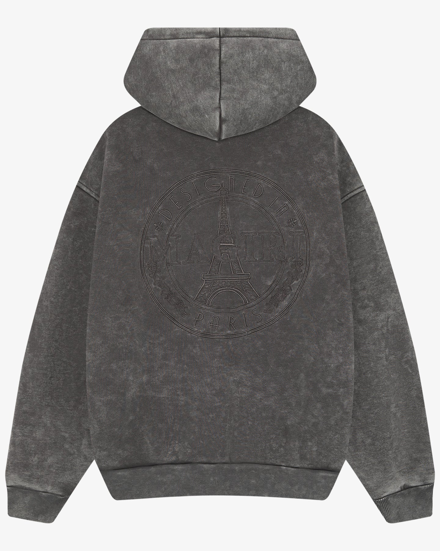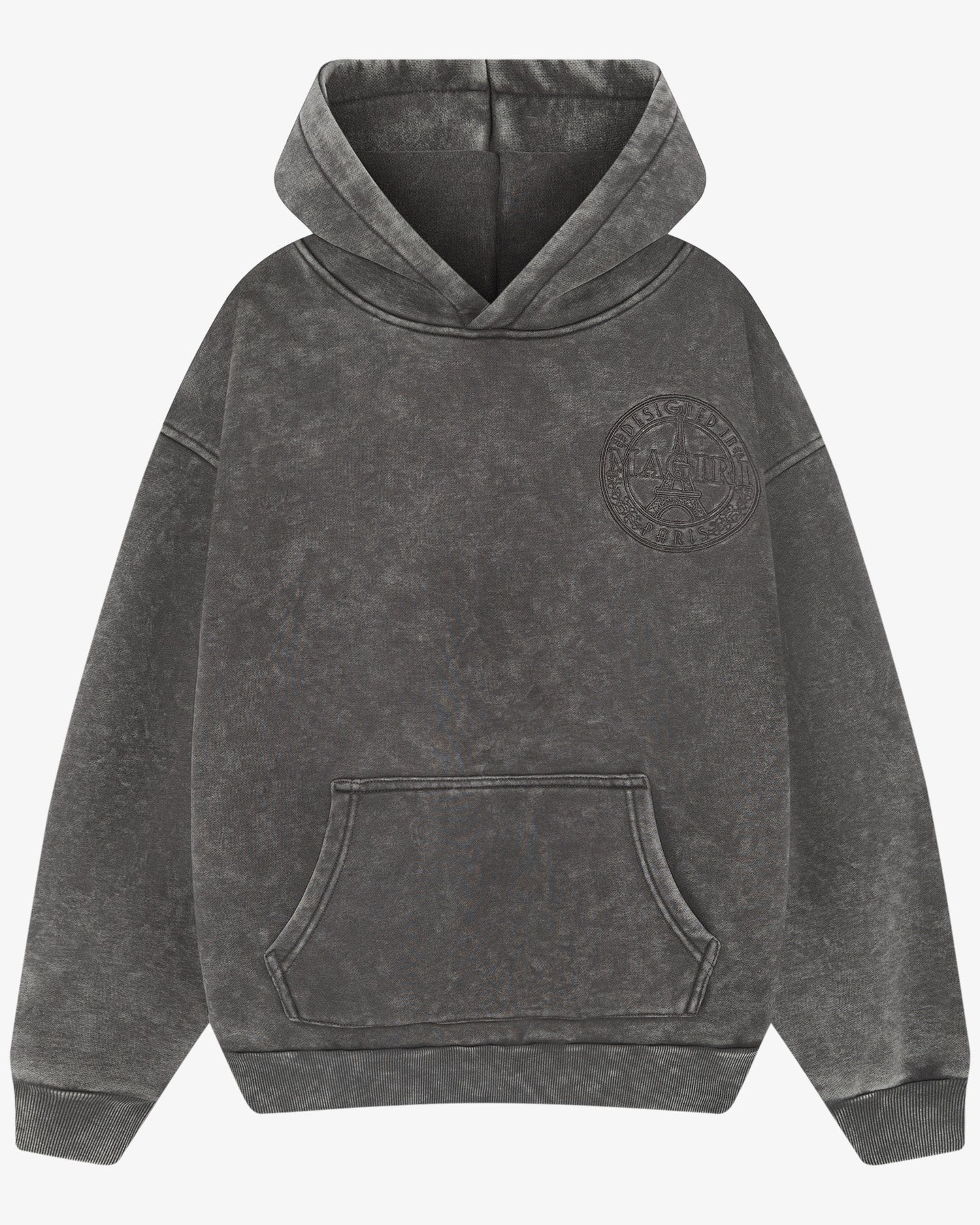 Embroidered Acid Wash Hoodie in Washed Grey