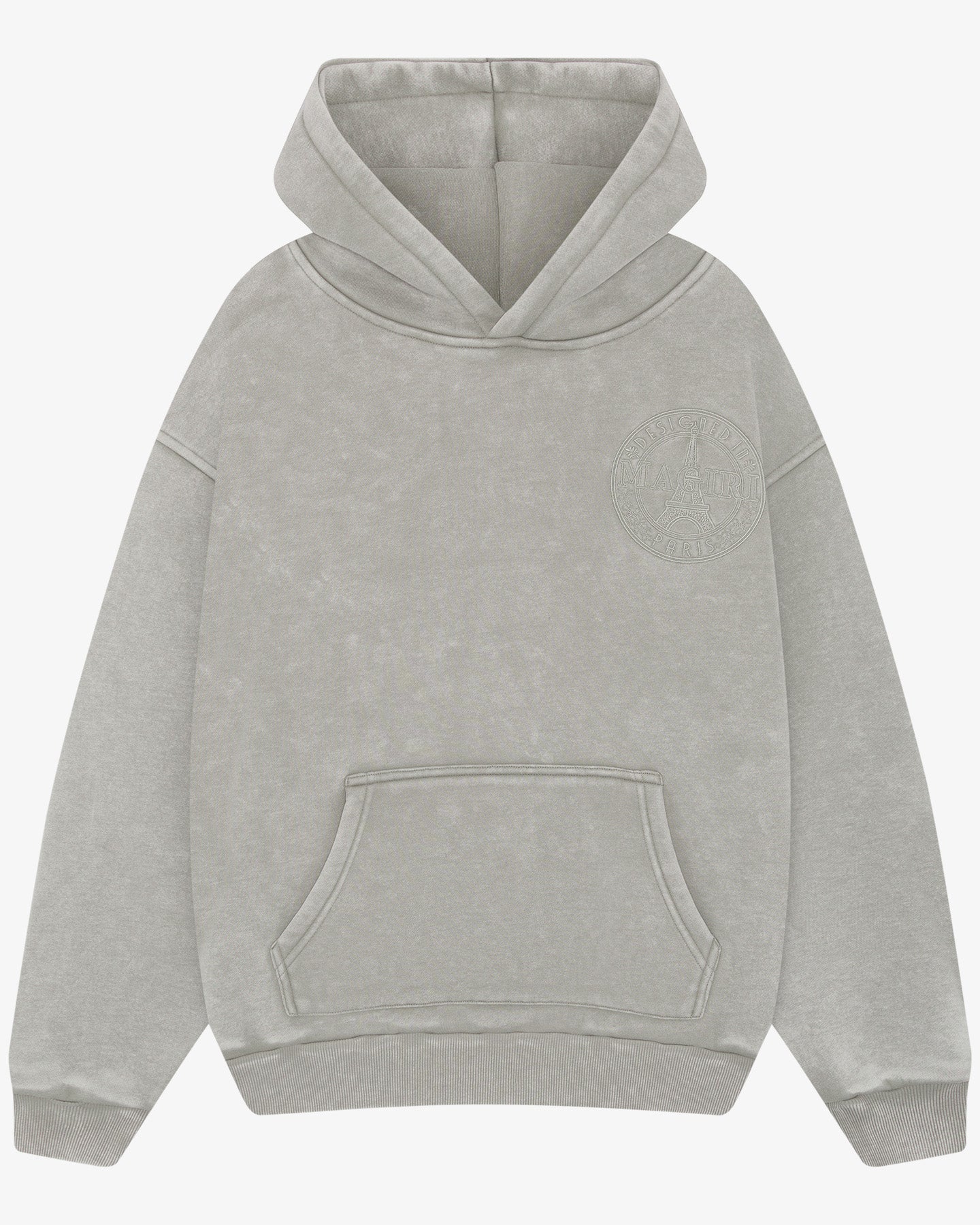 Embroidered Acid Wash Hoodie in Washed Oatmeal