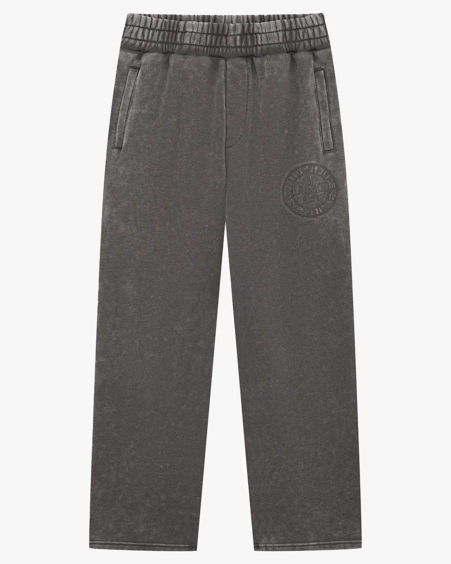Embroidered Acid Wash Joggers in Washed Grey