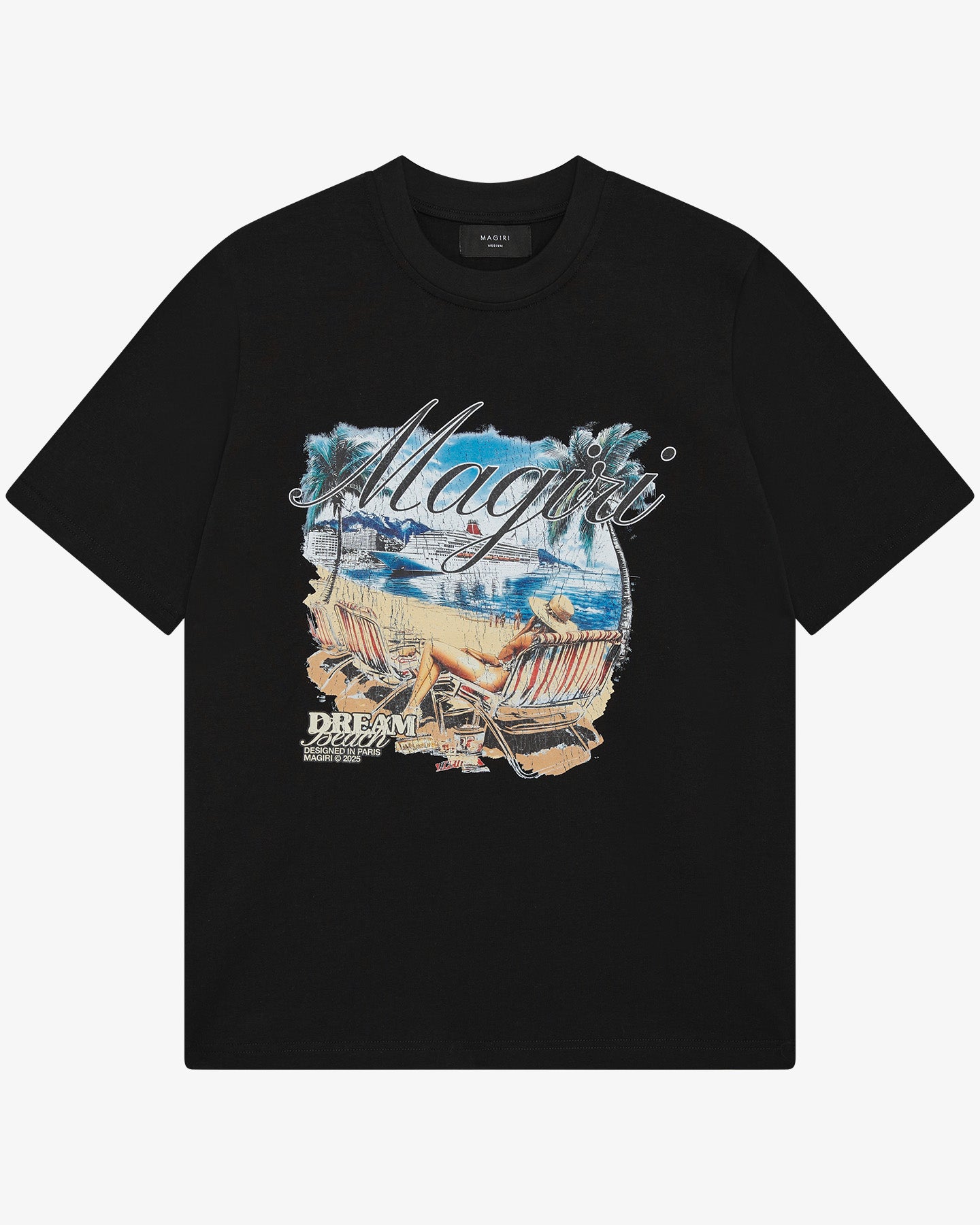 The MAGIRI Dream Beach T-Shirt captures the spirit of escapism through its nostalgic Riviera-inspired artwork. Made from 100% luxurious cotton, it offers a relaxed silhouette and soft touch for everyday sophistication. The cinematic print evokes the golden age of travel - a statement piece for modern resort dressing.