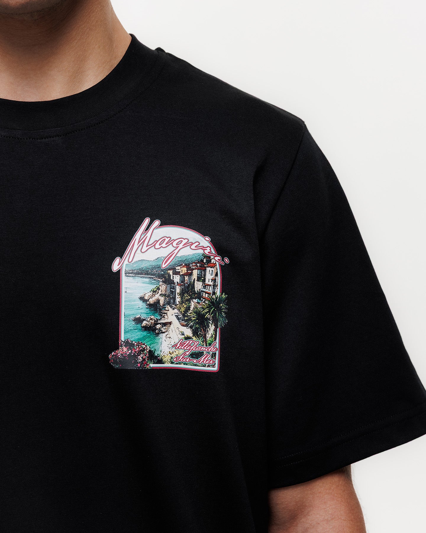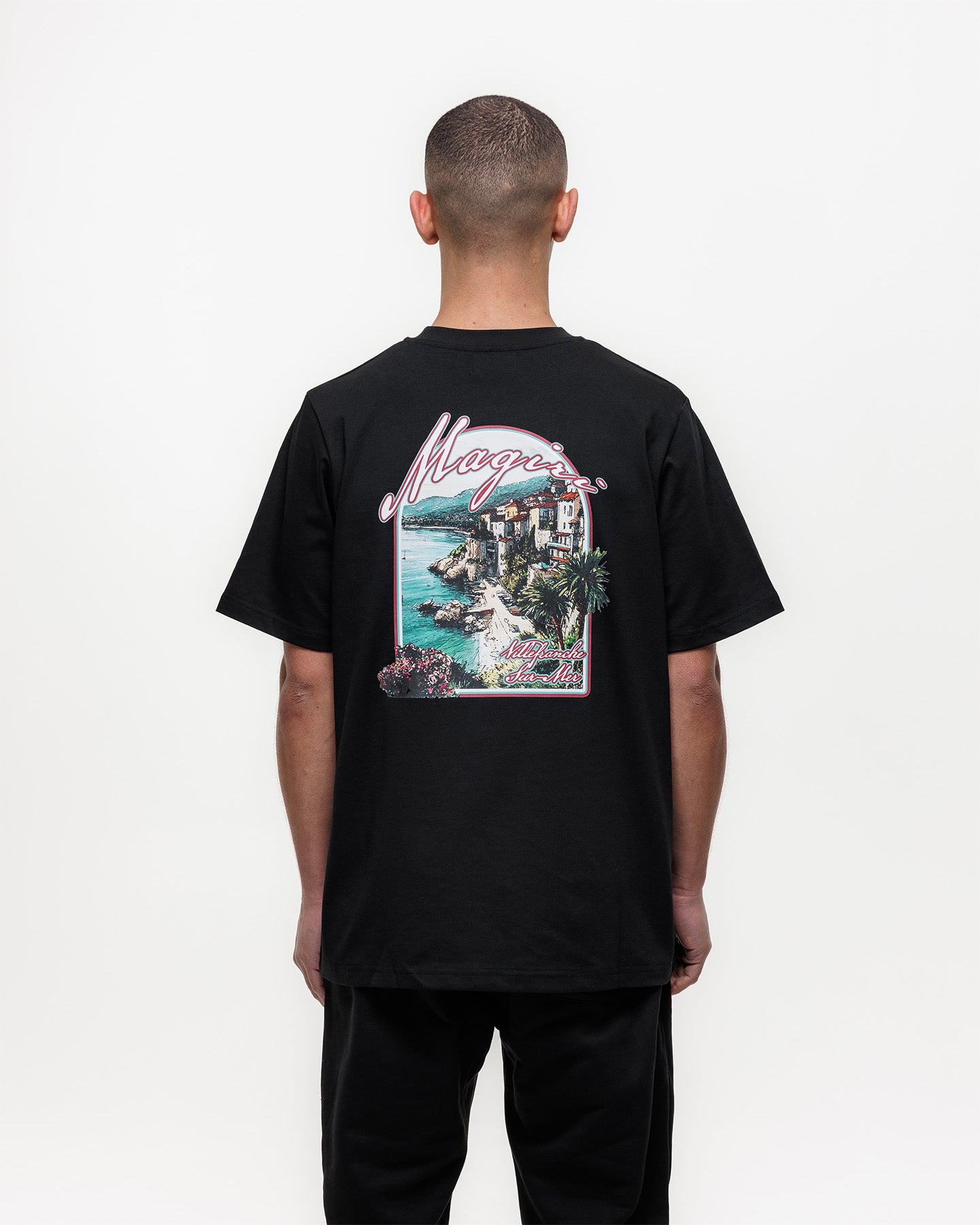 The MAGIRI Sur Mur T-Shirt evokes the calm elegance of the Côte d’Azur through soft tones and refined composition. Expertly crafted from 100% cotton, it balances contemporary style with nostalgic artistry. A distinguished wardrobe essential inspired by life on the Mediterranean coast.